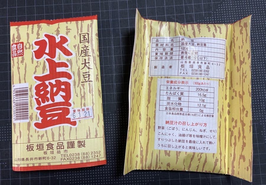 製造はすでに当ブログでも紹介の「水上納豆」の板垣食品さん。