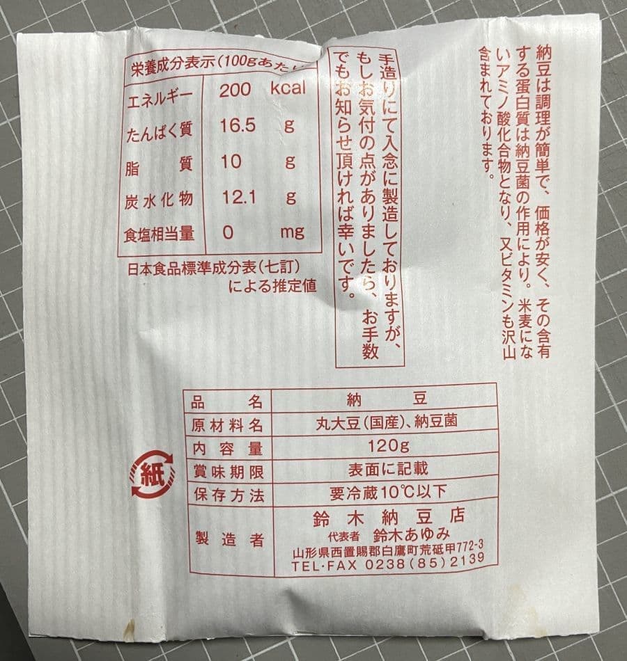 長瀞といえば秩父の風光明媚な名勝地「長瀞」を思い出しますが、こちらは山形県内でよく見かける有限会社長瀞納豆(東根市長瀞)さんの納豆です。